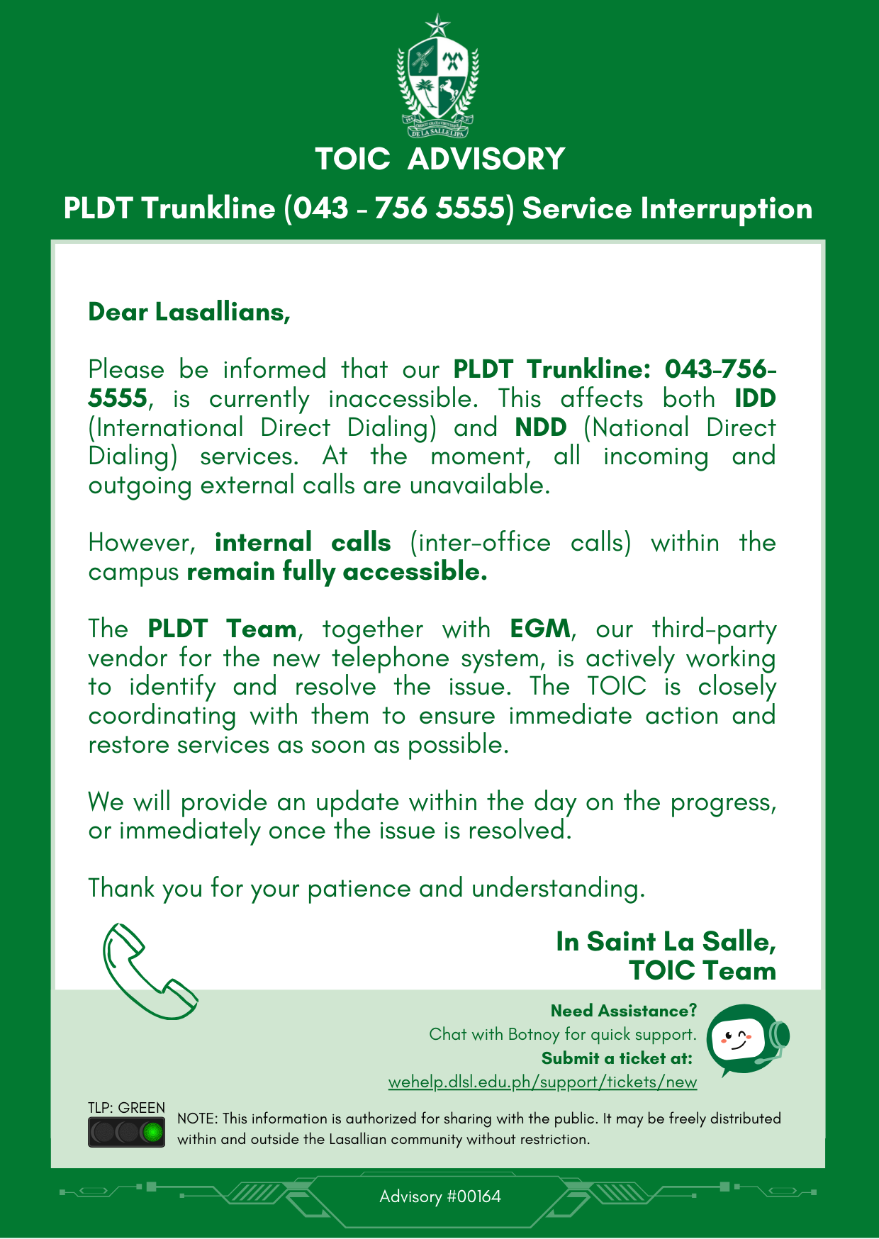 PLDT Trunkline (043 - 756 5555) Service Interruption